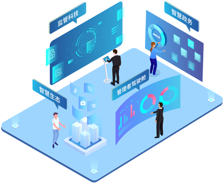 针对多重线上线下渠道的产品服务与丰富的政务平台服务,提供场景化梳理、主题化展示、大数据可视化等专业定制方案。 -