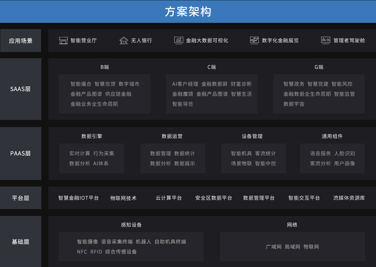 构建数字生态,建立数据引擎,加速传统业务线上化、数字化,立体呈现智慧金融产品体系,全方位赋能企业服务各领域。 -